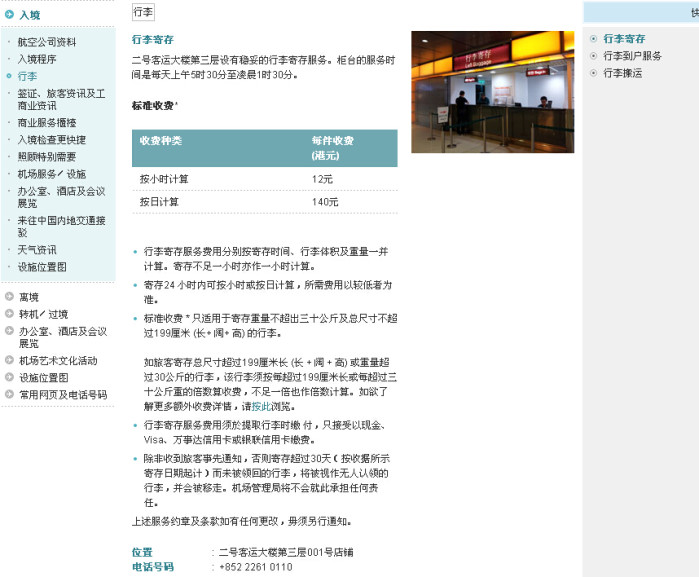 机场笫2站辧值机大堂内的1个柜位,但收费昂贵,放1天就需付一百多元。香港