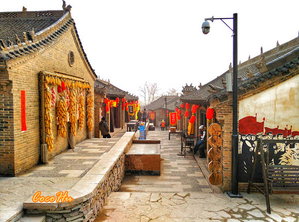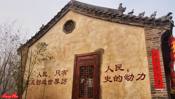没随着人潮追赶新婚夫妻的脚步,而是走街串巷地细细感受民俗村里带来的齐鲁气息。满街的金色玉米带着收获的喜悦,红色的标语让人瞬间穿越回从前。