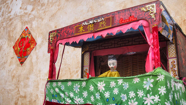 一个小小的舞台和小小的演员,吸引了大家长久地驻足。第一次看木偶戏,演戏的老翁目测年过七旬,他的眼镜是那种旧时代的圆片眼睛,眼镜腿用白色的胶布紧紧地缠绕,这让我想起了我的小学生物老师。满脸的沧桑,嗓门却嘹亮,虽然唱词完全听不懂,但韵味浓厚,回味悠长。