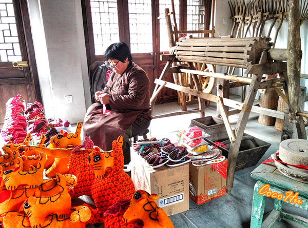 一个个憨厚的布老虎张着嘴巴哈哈地笑,我问它们的主人,奶奶说,那是为了给孩子们图个吉利,希望这些小老虎枕头和布鞋,能让孩子们变得虎头虎脑、笑口常开。尽管年事已高,老花镜背后的眼神却慈祥温暖,一针一线都从容自然,带着时光的味道。