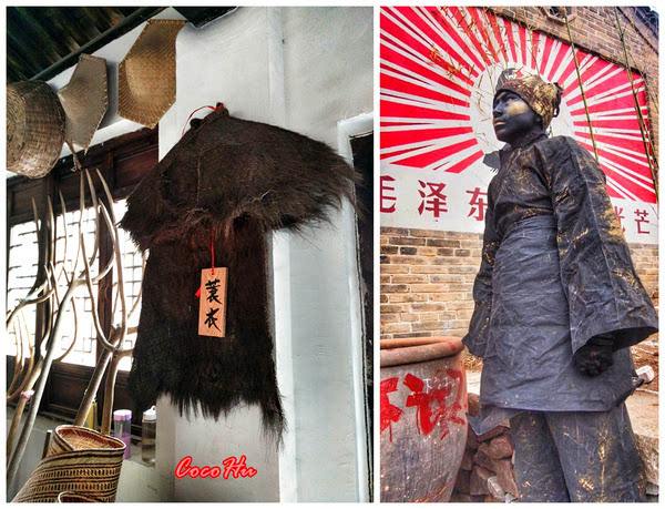 像一件道具一样屹立不动,村口一侧的铜人像墙上挂着的蓑衣一样,真正和环境融为了一体。连他背后的毛爷爷,也被他夺去了光芒。