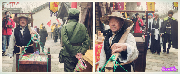 走进看看才发现,很遗憾,俊俏的媒婆原来是男性反串的。凑上前去,发现烟袋锅也不是点燃的,此时大哥突然用朗诵体普通话低沉地说了一句“我不抽烟”,呃········吓坏了宝宝。