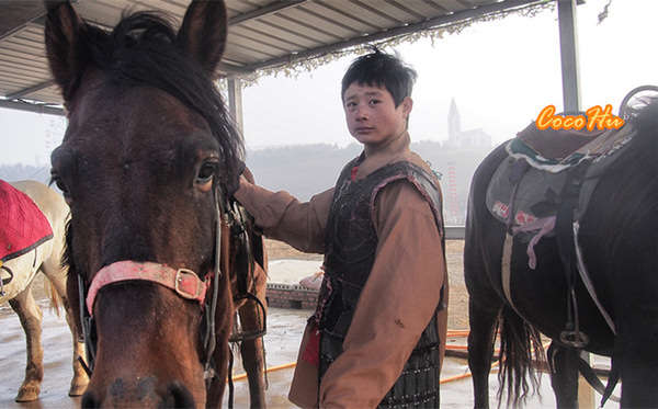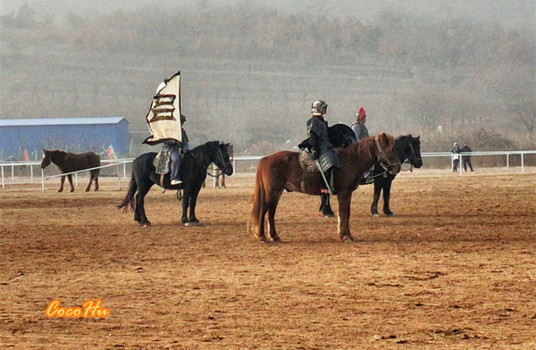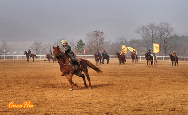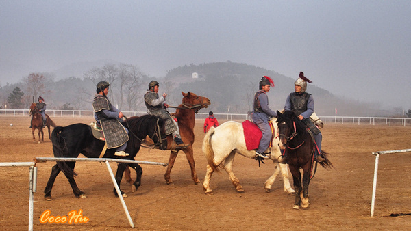 打听过才知道,这里的驯马员,基本上都是参演过《三国演义》和一票古装大片的骑士,各个马术精湛,能在马上做各种高难度动作,尽管天气寒冷,观众不多,可也铆劲演出。