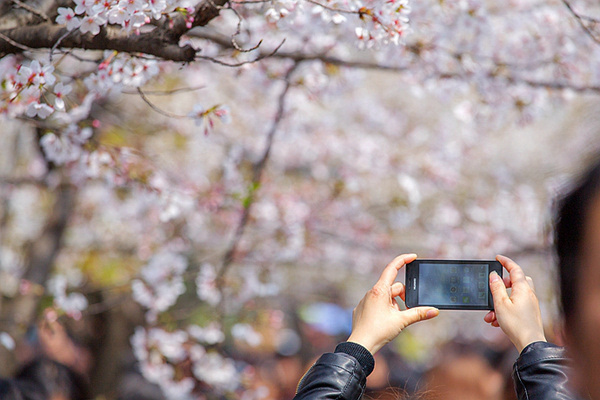 随着春天的到来,气温逐渐升高,樱花从温暖的日本列岛南端向北方依次开放,因此形成一条由南向北推进的“樱前线”。在这期间会有不少樱花爱好者、摄影爱好者扛着"长枪大炮”沉浸在白色、粉色的花海里。