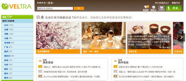 Veltra是日本一家口碑不错的旅游公司,直接和日本当地活动商合作,以日元结算,所以价格都是最低的,也有中文服务,可以帮客人和活动供应商联系共同。网站有中文页面,非常方便。