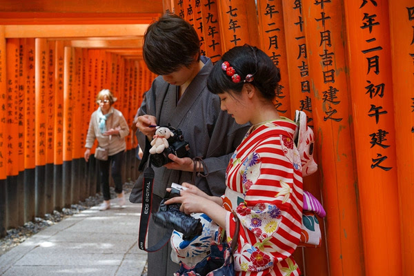 不得不提的是,樱花和日本传统和服是最配的,在赏樱胜地,随处可见穿着日本传统服饰的美女子,为美艳的樱花增添了一道点睛的亮丽风景。当然,不要羡慕他们,即便是中国人也可以在日本当地租用和服,有男子服饰与女子服饰之分。